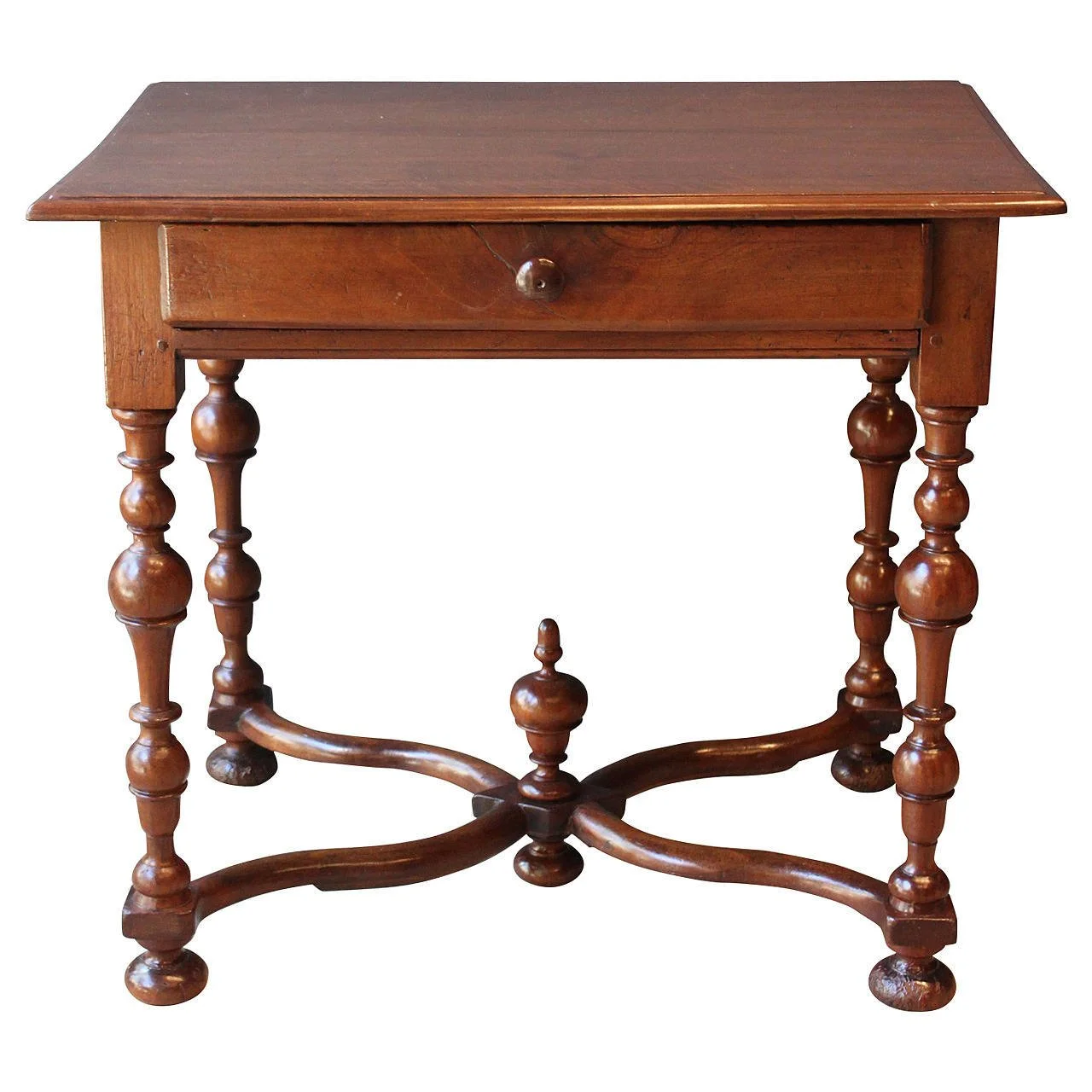 A crossed stretcher at the bottom of a chair or table.