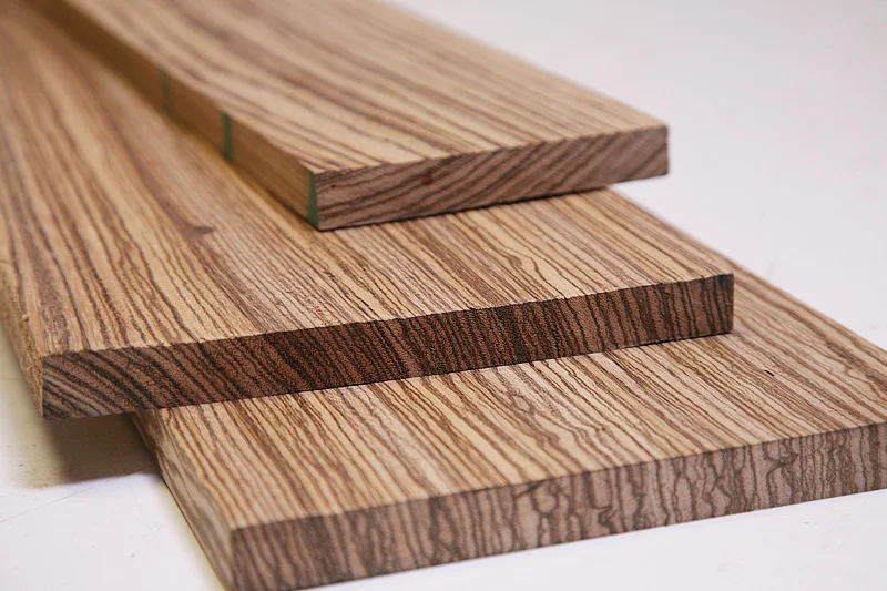 Wood that resembles the striping of a zebra, with dark stripes on a light background. Found on contemporary furniture pieces and decorative wall paneling.