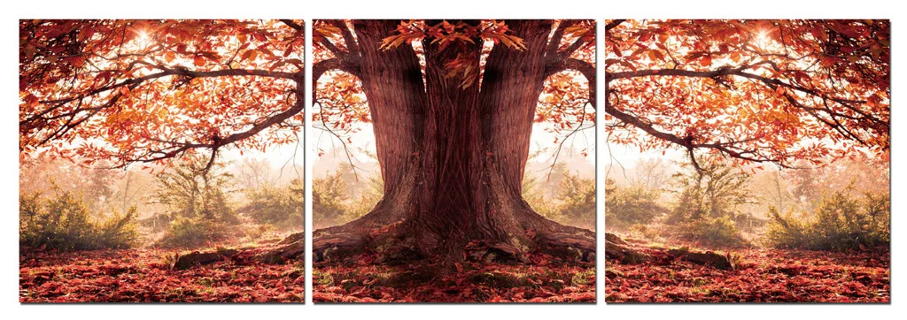 A three-paneled artwork. Historically, triptychs were hinged together so that the two side wings closed over the central panel.