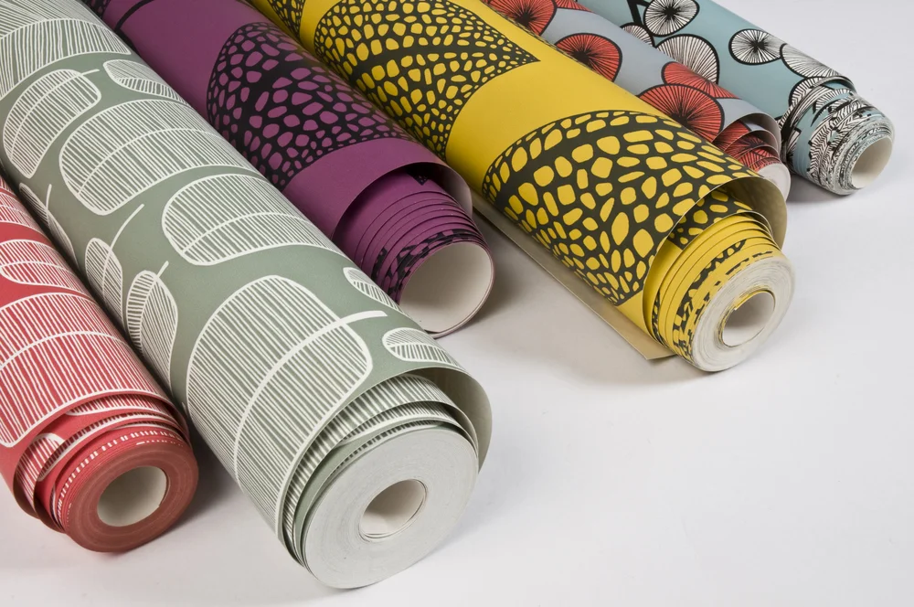 A decorative material which is used to cover and decorate the interior walls of homes, offices and other buildings. Wallpaper is usually sold in rolls and is put onto a wall using wallpaper paste.