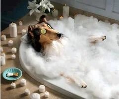 Fido loves the water, but do your drains get clogged with all that hair? No worries...take a piece of steel wool and place it over the drain. It will catch the hair before if reaches the drain, and you can simply throw it away when the bath is done!