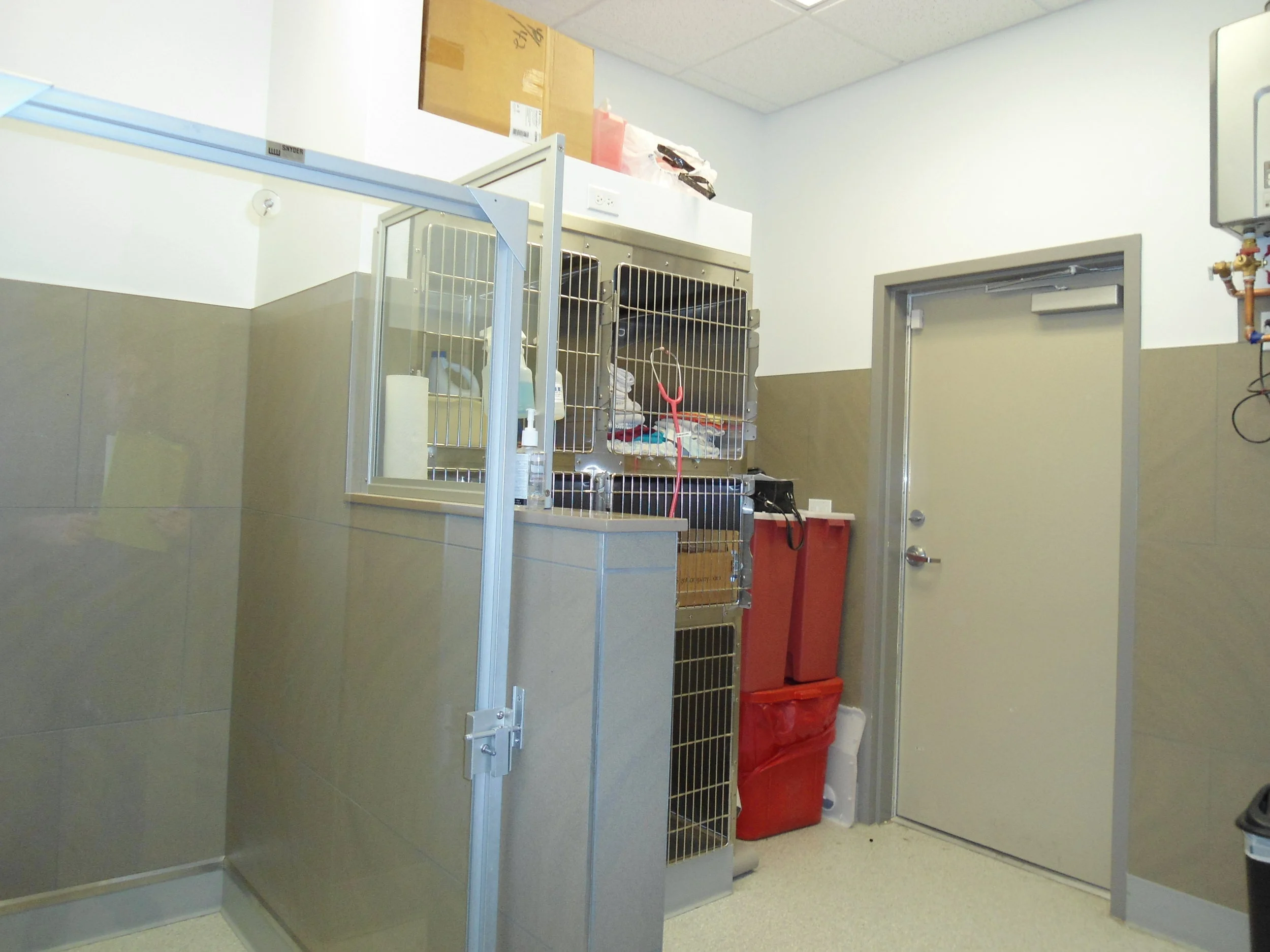 To create a 'Zen' room for special procedures, the client wanted to use a former storage area where walls had to be removed, and plumbing and electrical relocated. Our design included new cabinets, wall treatments, flooring, and furnishings. Now they have the perfect relaxation spa for pets and their owners!